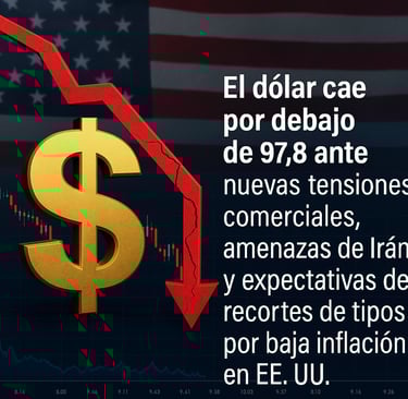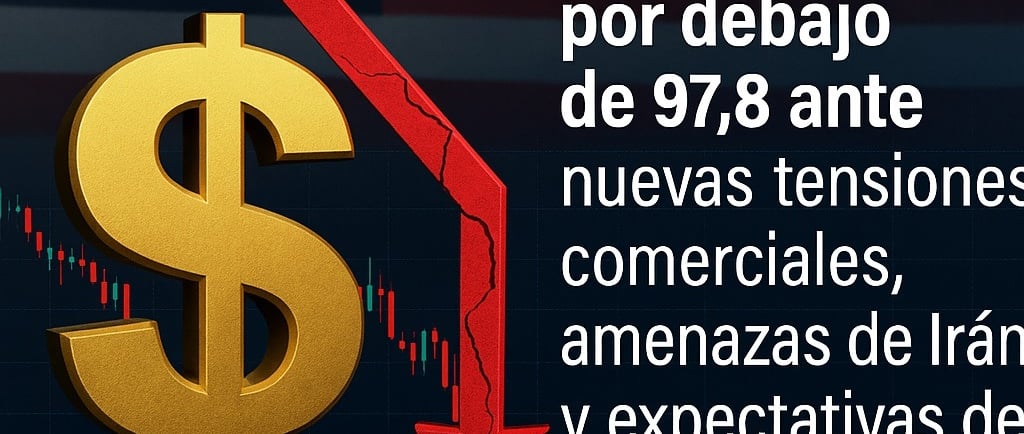 El dólar cae por debajo de 97,8 ante nuevas tensiones comerciales, amenazas de Irán y expectativas de recortes de tipos por baja inflación en EE. UU.