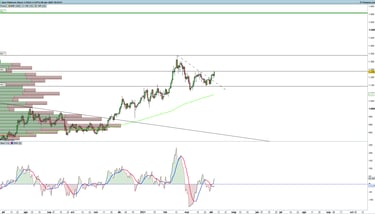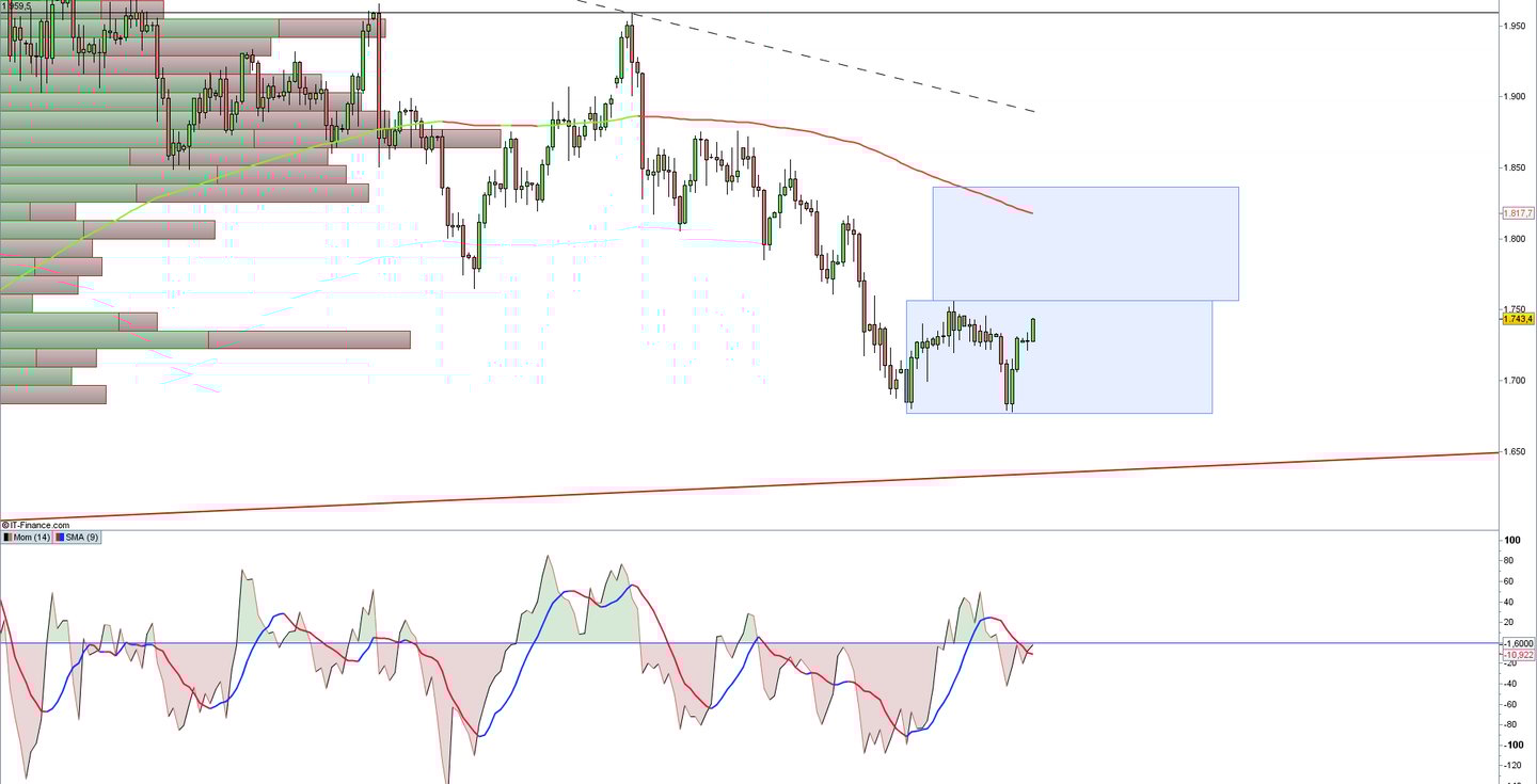Tras encontrar suelo en los 1676 dólares por onza, el oro lleva 5 jornadas consecutivas de recuperación, la clave está en la superación de los 1755 dólares a precios de cierre diarios, de ser así, activaría una figura de doble suelo con objetivo teórico en los 1836 dólares.