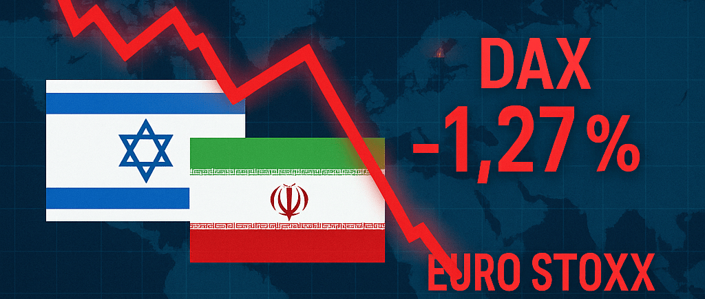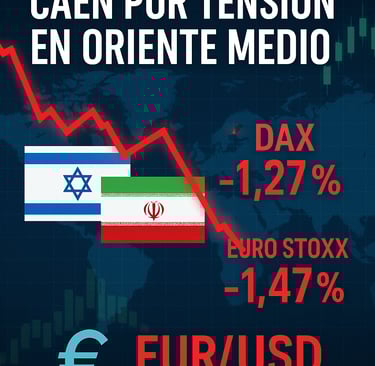 Los índices europeos caen tras ataques entre Israel e Irán. DAX y Euro Stoxx retroceden y el euro se debilita frente al dólar.